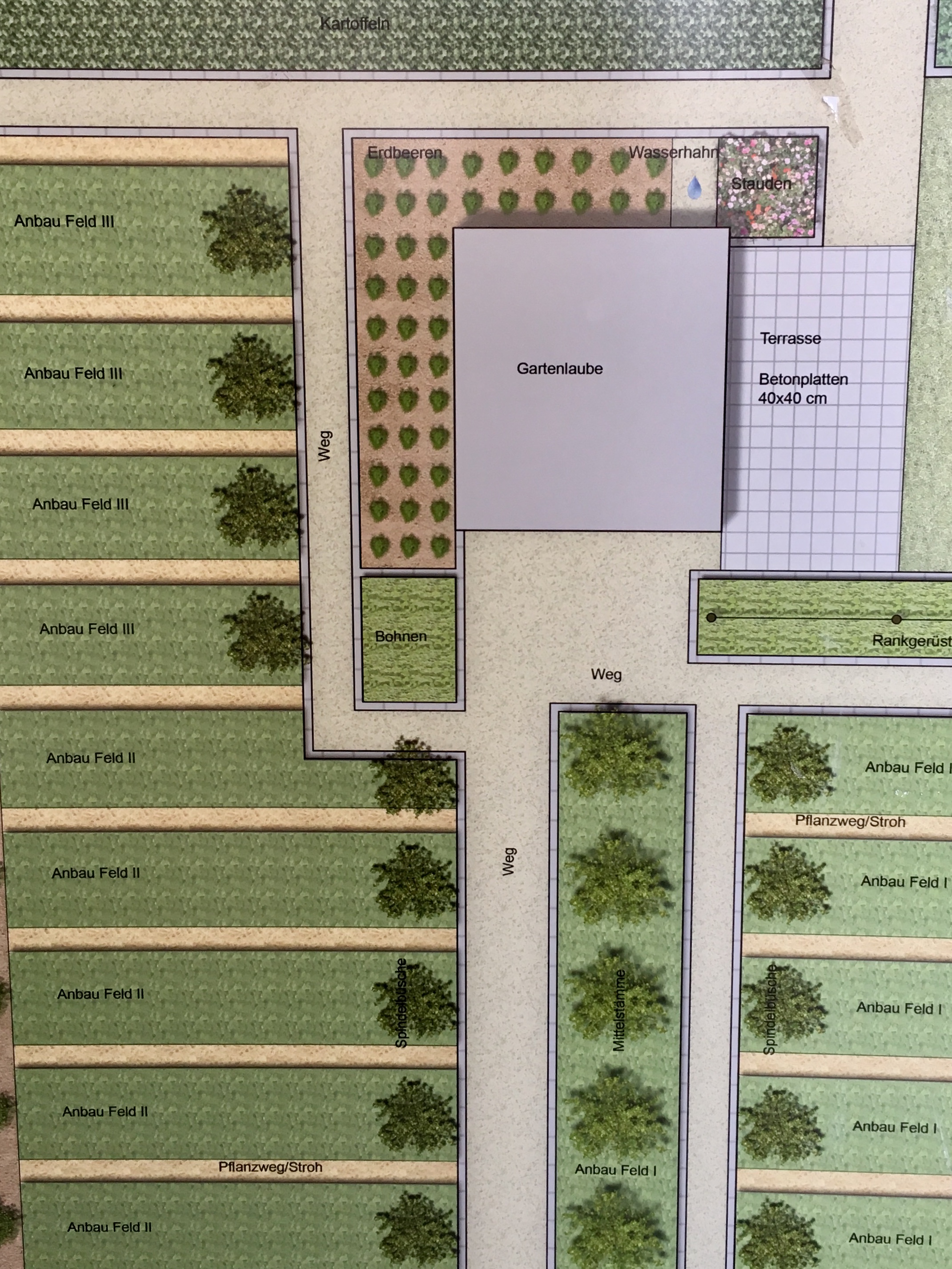 270 Quadratmeter haben die Pachtgärten, die ursprünglich für die Bewohner der Mehrfamilienhäuser in der Römersiedlung gedacht waren. Liegestuhl oder Riesentrampolin gibt es auf Parzelle 16 nicht. Auch keine naturnahen Beete im Bauerngartenstil oder romantische Kletterpflanzen. Dem Landschaftsarchitekten Leberecht Migge aus Worspwede saß noch die Hungererfahrung des I. Weltkriegs in den Knochen, als er für May den Bewirtschaftungsplan ausarbeitete. Er war ein Verfechter der Selbstversorgung und übertrug das Prinzip der Dreifelderwirtschaft streng auf den Kleingarten. Vier Personen sollte der Ertrag übers Jahr ernähren können. Auf Einverständnis und Konsens ihrer neuen Menschen haben die Reformplaner nicht unbedingt gesetzt. Ein Hauch von Verordnungswahn weht über der Petersilie. Bis ins Kleinste gehen die Anweisungen.